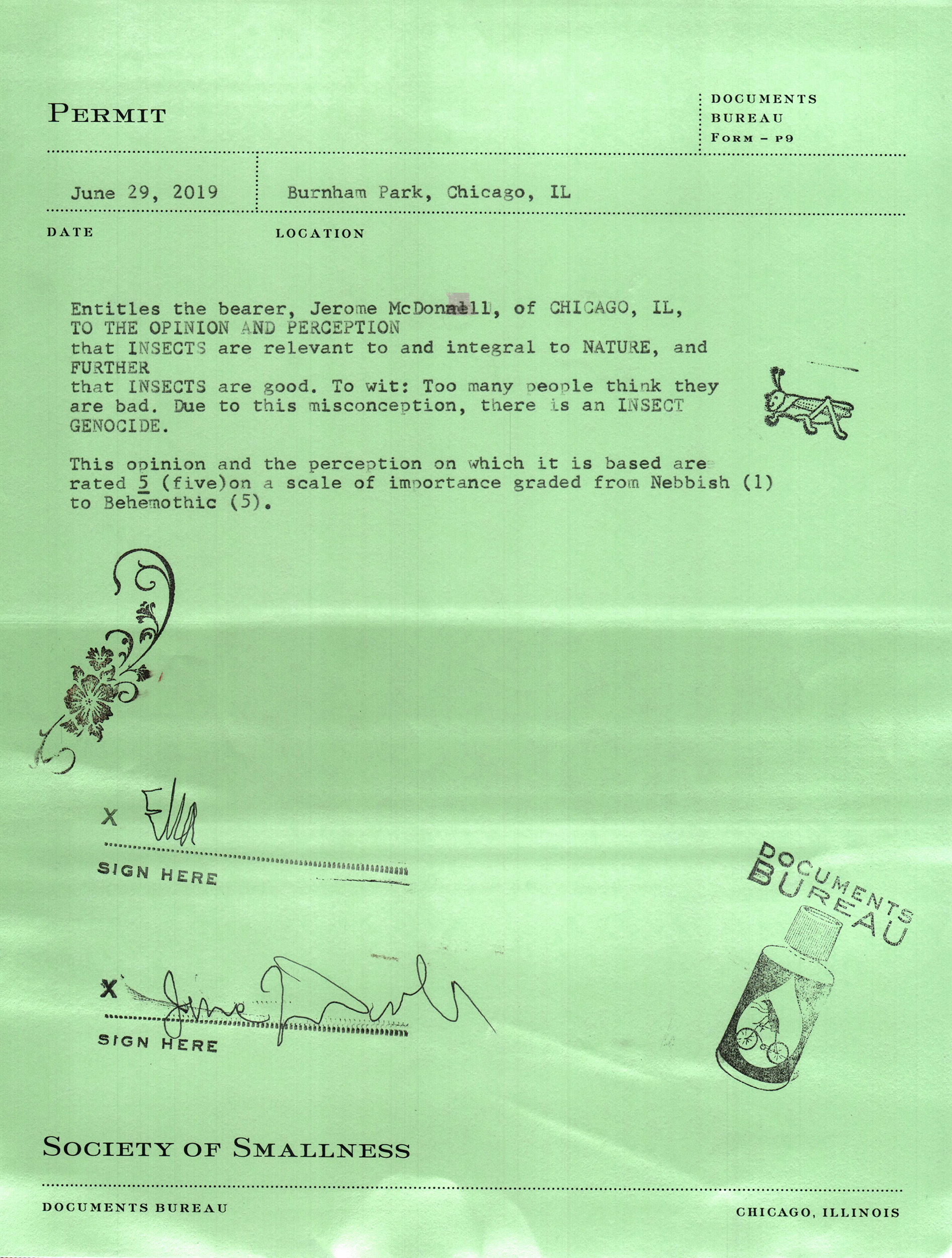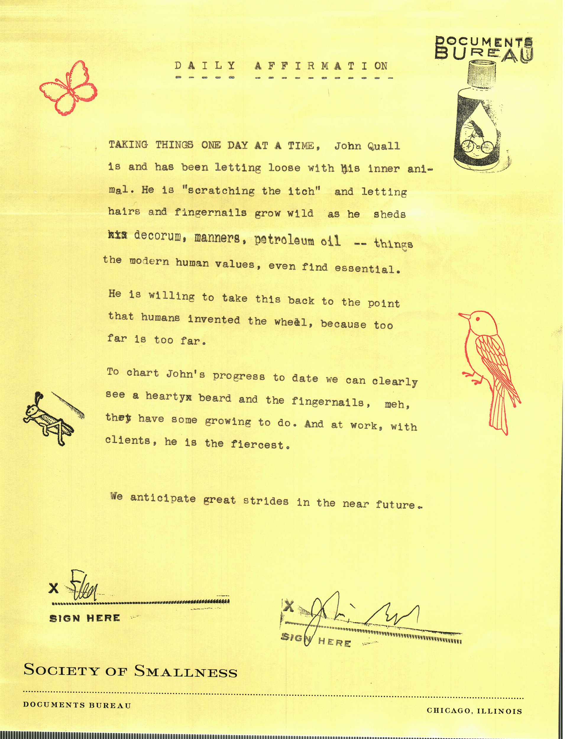 A disruptive occurrence involving Justin R. Lawson, a new employee who began his appointment with Documents Bureau during the Chicago Art Department’s Crystal Ball necessitated the following OFFICIAL STATEMENT to nip in the bud any innuendo and back room snickering.